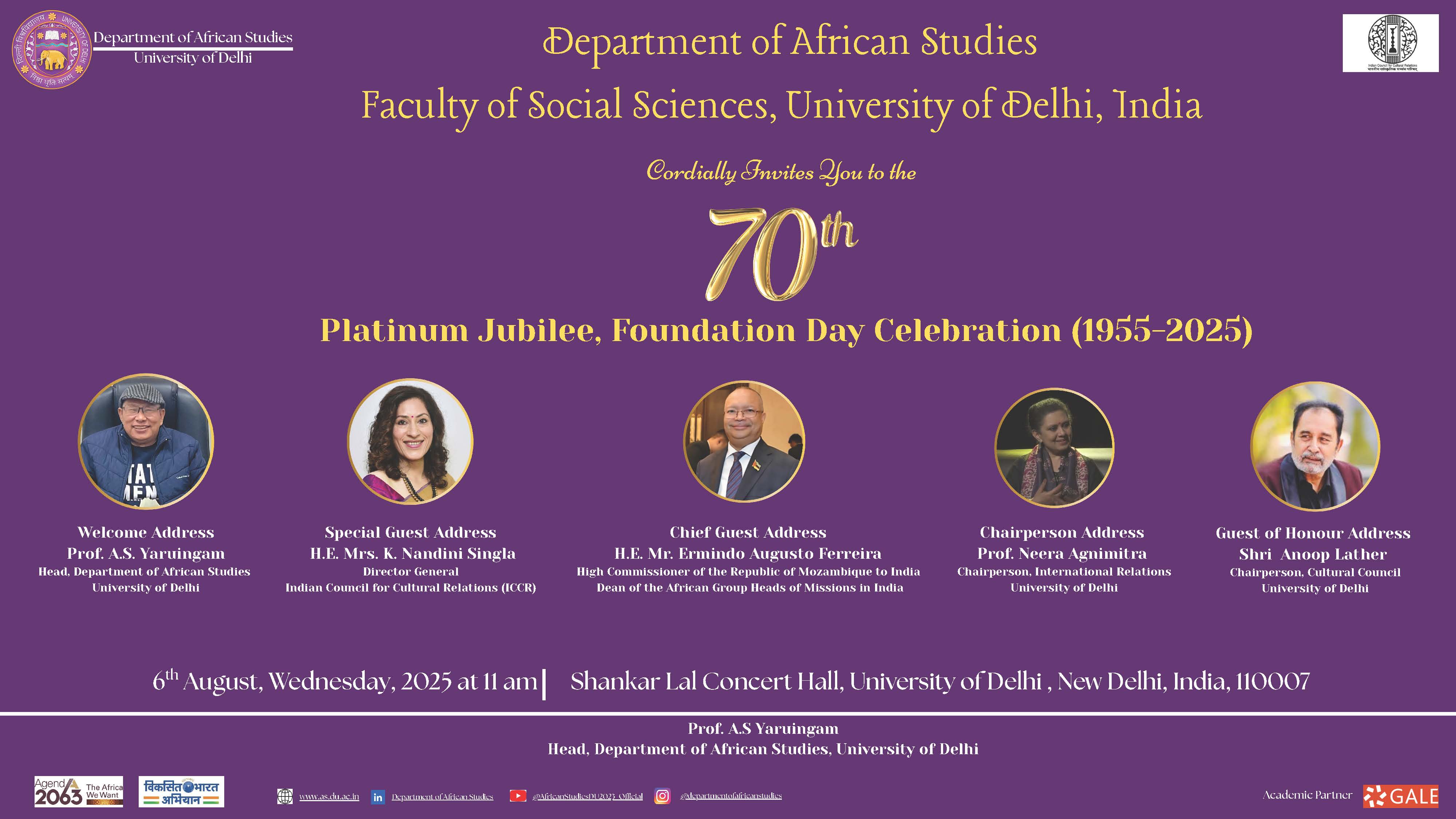 Upcoming Event: 70th Platinum Jubilee, Foundation Day Celebration (1955-2025) of the Department of African Studies.
