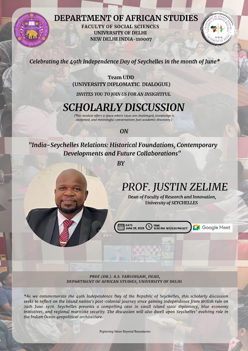 UDD Special Lecture: SEYCHELLES-INDIA RELATIONS AND FUTURE PROSPECTS on 20/01/2026